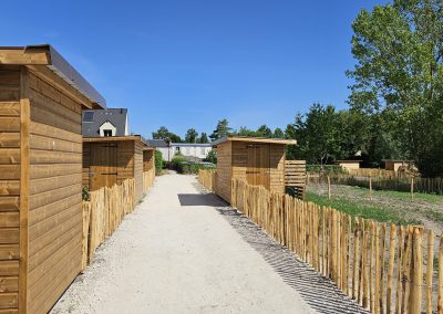 Chaque parcelle est équipée de manière à favoriser un jardinage respectueux de l’environnement et durable. Vous y trouverez des cabanes de rangement pour stocker vos outils, des récupérateurs d’eau de pluie pour une gestion écologique des ressources, ainsi que des composteurs pour transformer vos déchets organiques en précieux engrais naturel.